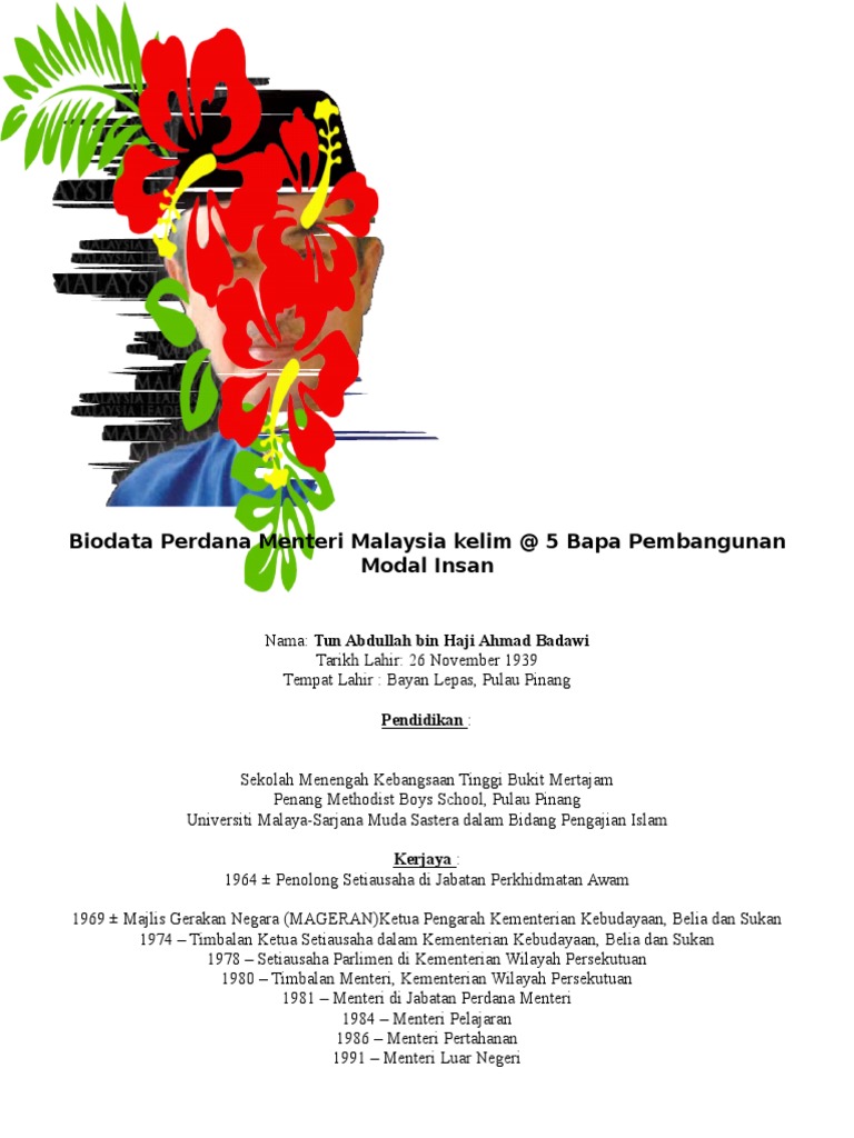 Biography of abdullah bin haji ahmad badawi, former prime minister of malaysia. Tun abdullah ahmad badawi's career as a civil servant, political leader, diplomat and statesman spans 45 years of great service. Bapa pembangunan modal insan negara (tun abdullah hj. Pengurusan galeri tun abdullah ahmad badawi menafikan berita tular berhubung keadaan kesihatan bekas perdana menteri. Wicepremier najib został zaprzysiężony na premiera następnego dnia.